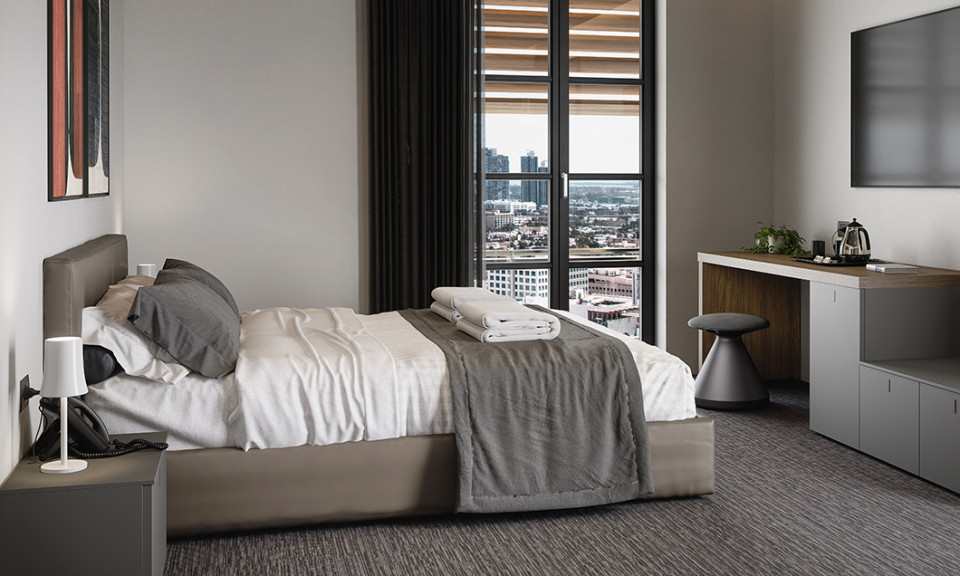 Das Bett Jerez ist dank der modernen Linienführung seines gepolsterten Kopfteils der Protagonist des Schlafzimmers. Frisch und geradlinig, richtet es den Schlafbereich virtuos ein.