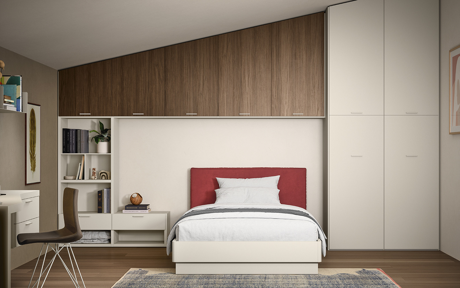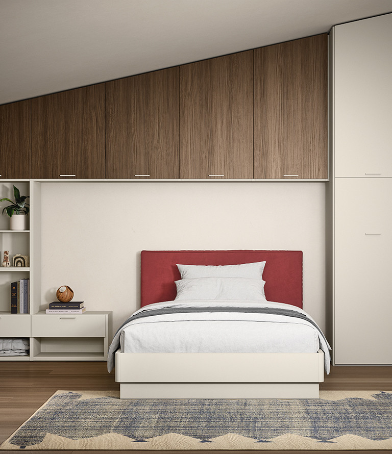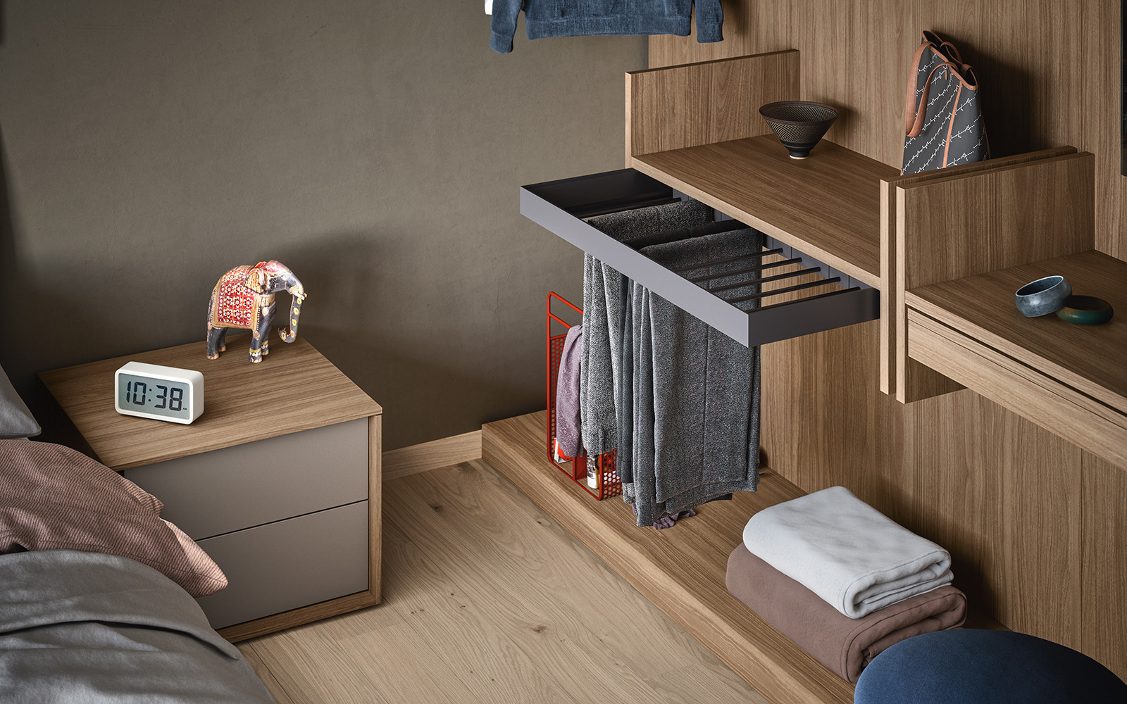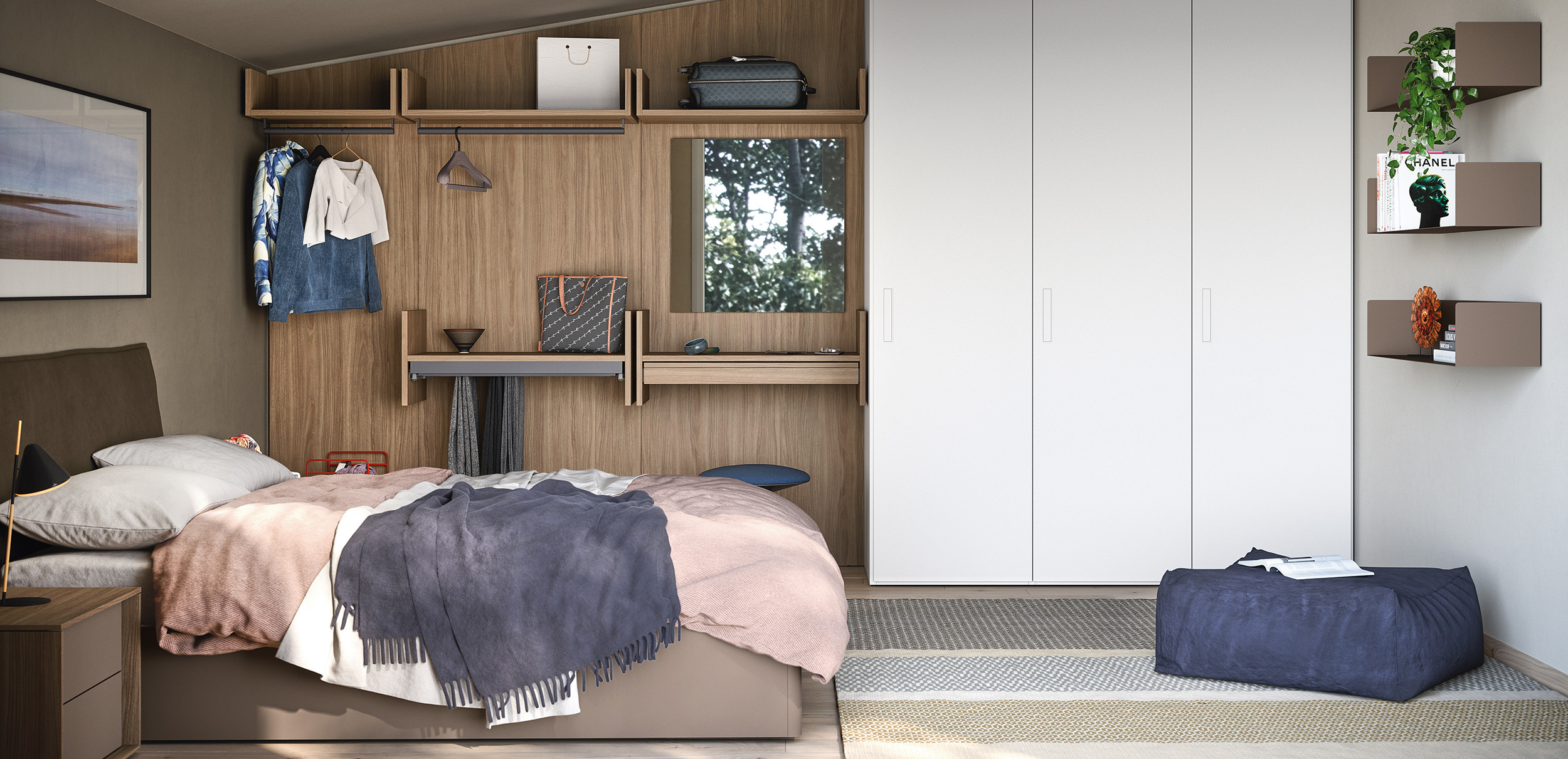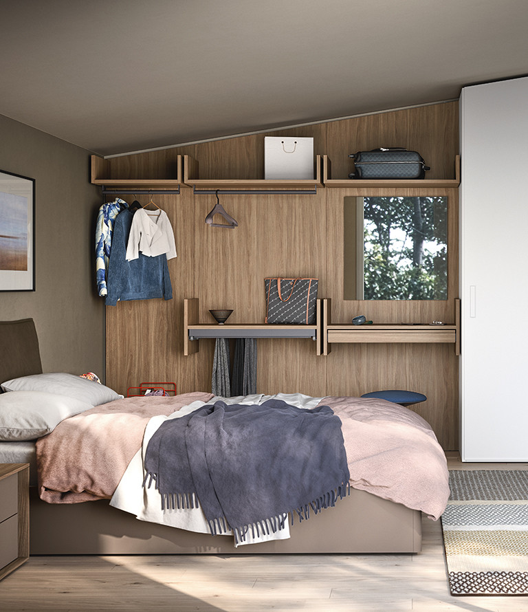 Die modular aufgebauten Elemente des Systems Cinquanta3 ermöglichen die optimale Nutzung des vorhandenen Raumes unter den Dachschrägen. Egal, ob ein gut organisierten Garderoben- oder Kleiderschrank oder eine maßgefertigte Schrankzusammenstellung. Die maßbezogenen Einschränkungen eines Dachgeschosses verwandeln sich in eine gestalterische Chance.
