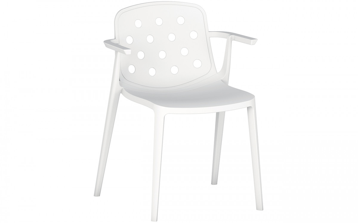 The Cork chair is made from technopolymer, a material that provides strength but without the weight. The absence of joins gives the chair a highly contemporary flavour and improves its longevity. The Cork chair's armrests are designed so that it can be slotted onto the table, raising it off the floor for easier cleaning underneath.