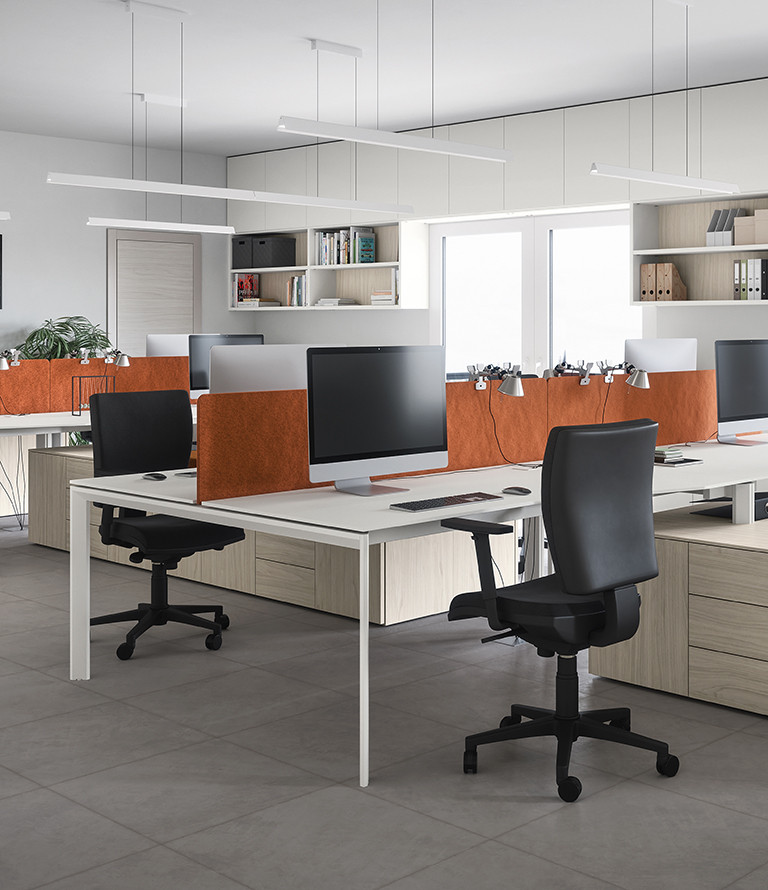 Wall panelling adds a decorative finishing touch to the configuration, being able to accommodate shelves, wall units, and floorstanding or wall-mounted base units. An ideal solution for giving the space a distinctive look, helped by the range of different colours and finishes on offer.