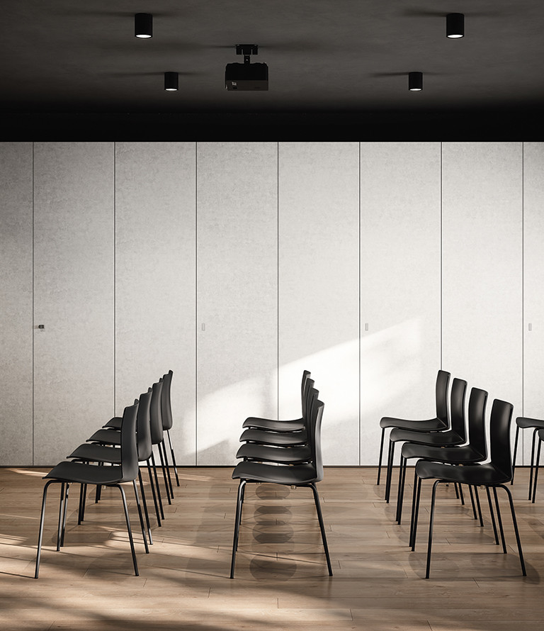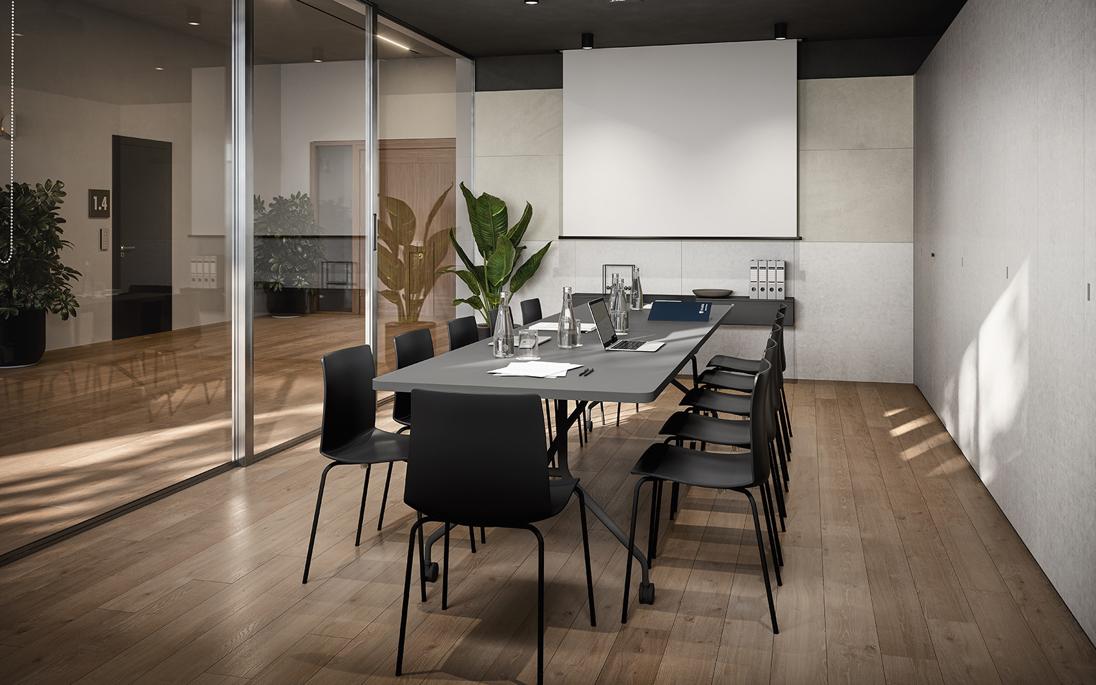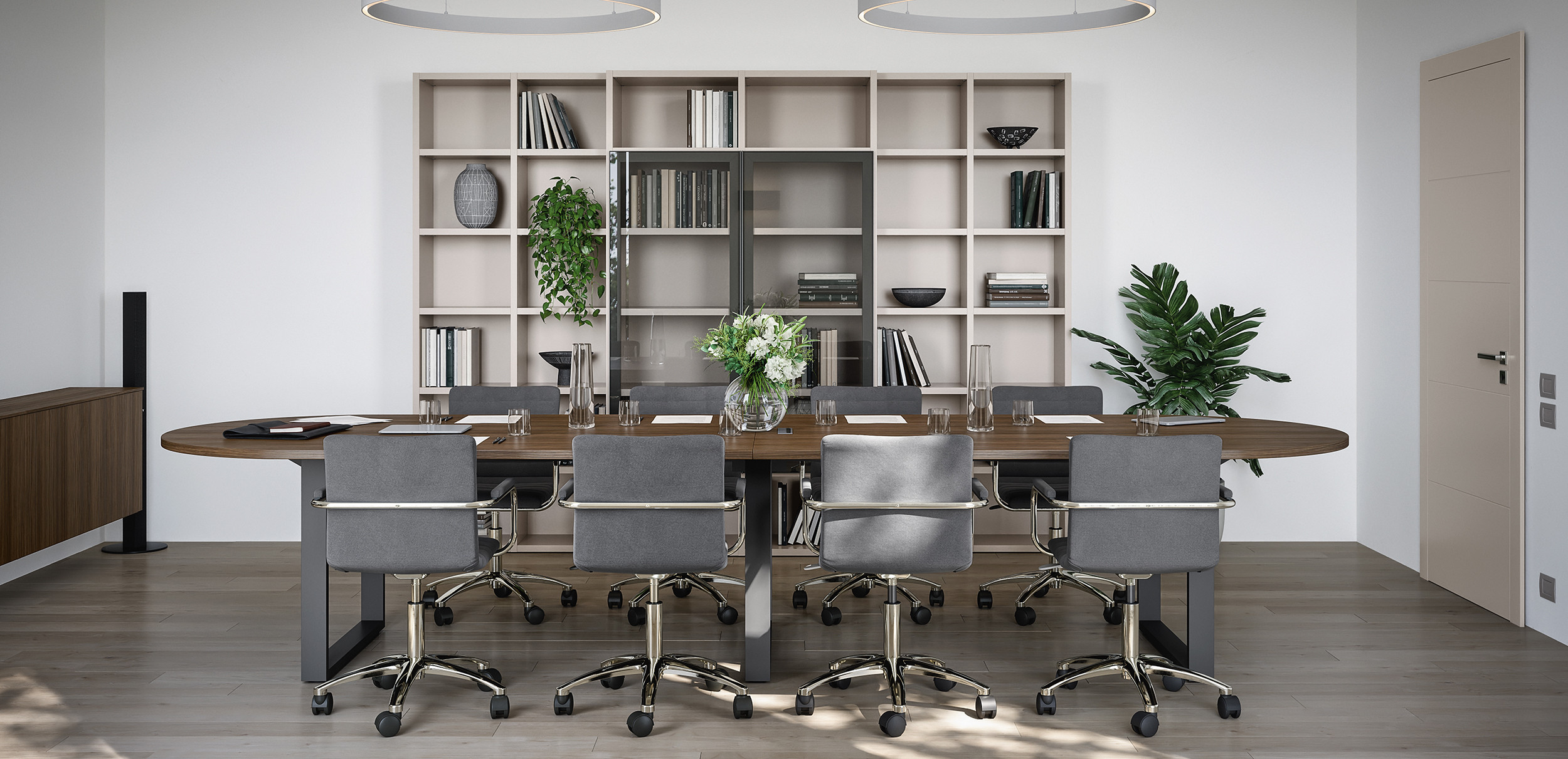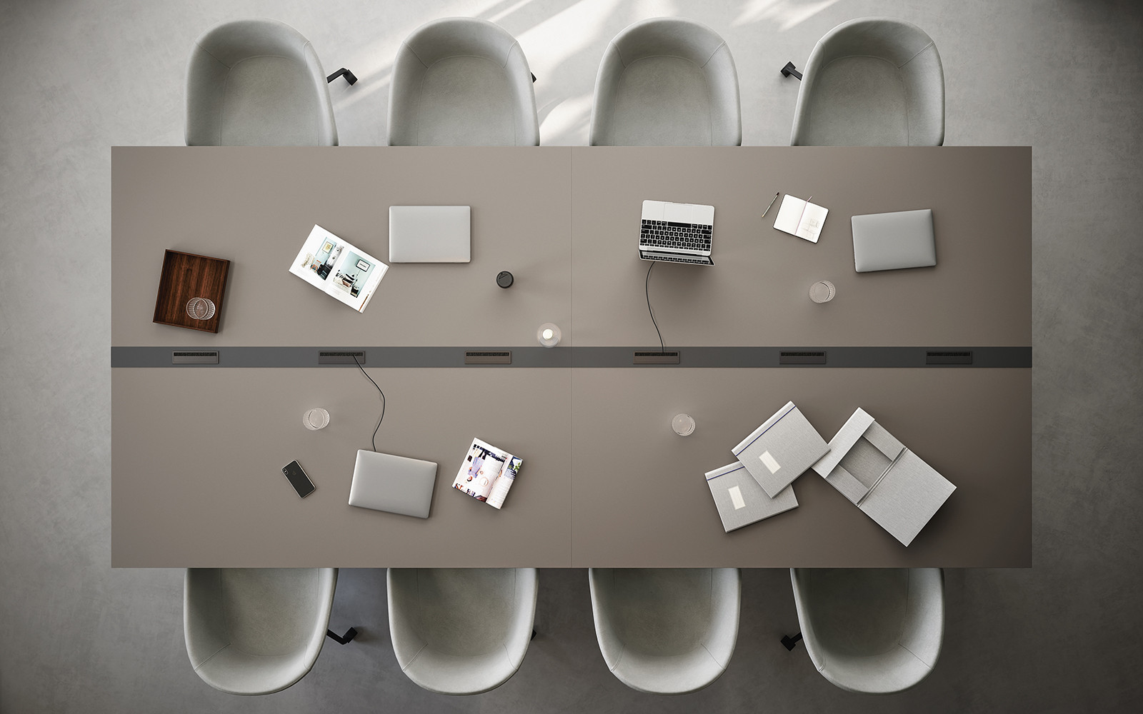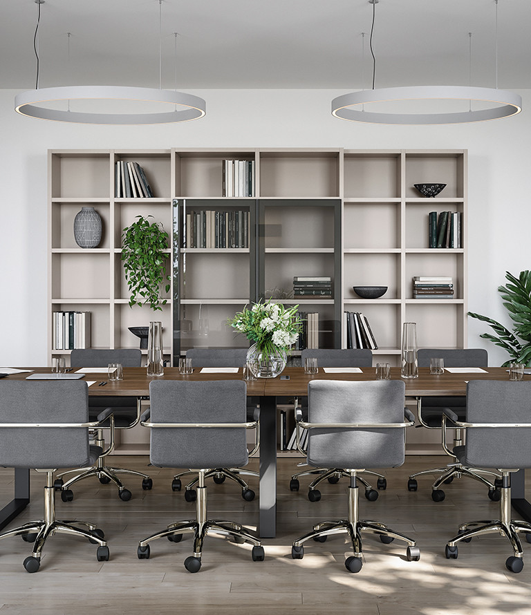 Shared spaces and practicality inform the layout: common areas are turned into places where people can come together and exchange ideas; workspaces where the furniture is designed, above all, to accommodate the occupants' everyday tasks. Functional elements for a design that focuses on ergonomic solutions.