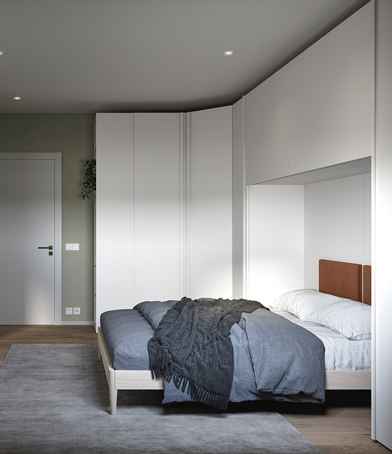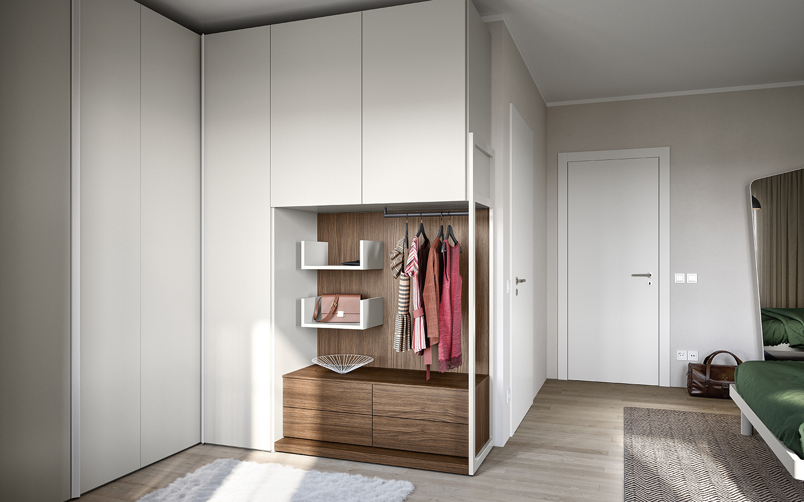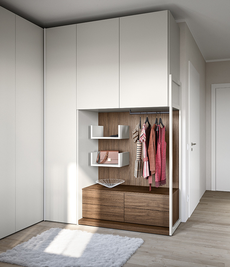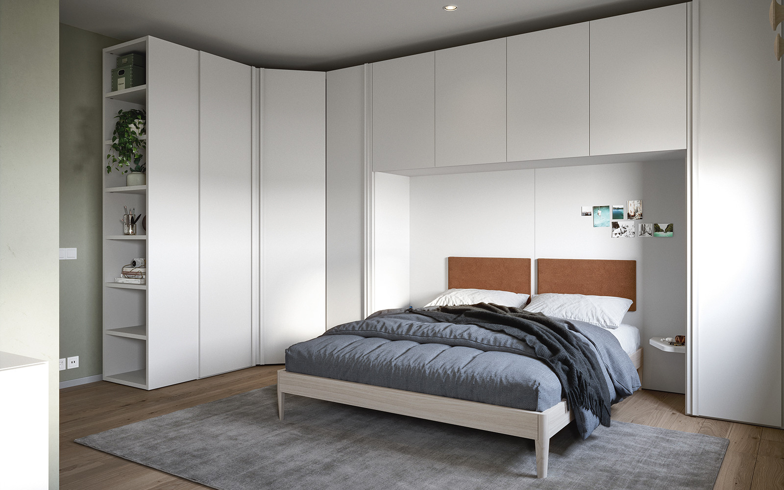La presencia de un nicho en el dormitorio es una oportunidad para organizar la habitación de forma funcional, optimizando el espacio. Gracias a la versatilidad de los elementos, las diferentes composiciones transforman la habitación, dándole carácter y racionalidad.