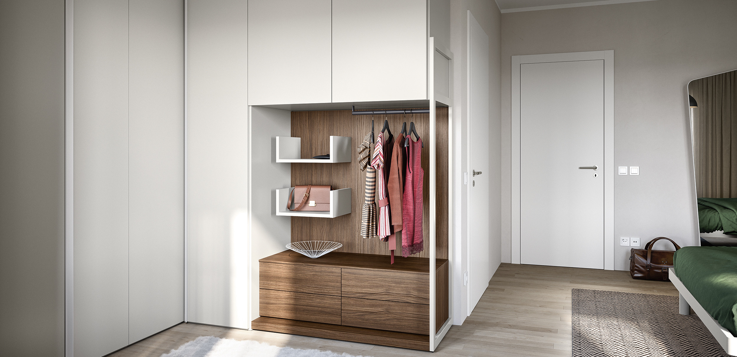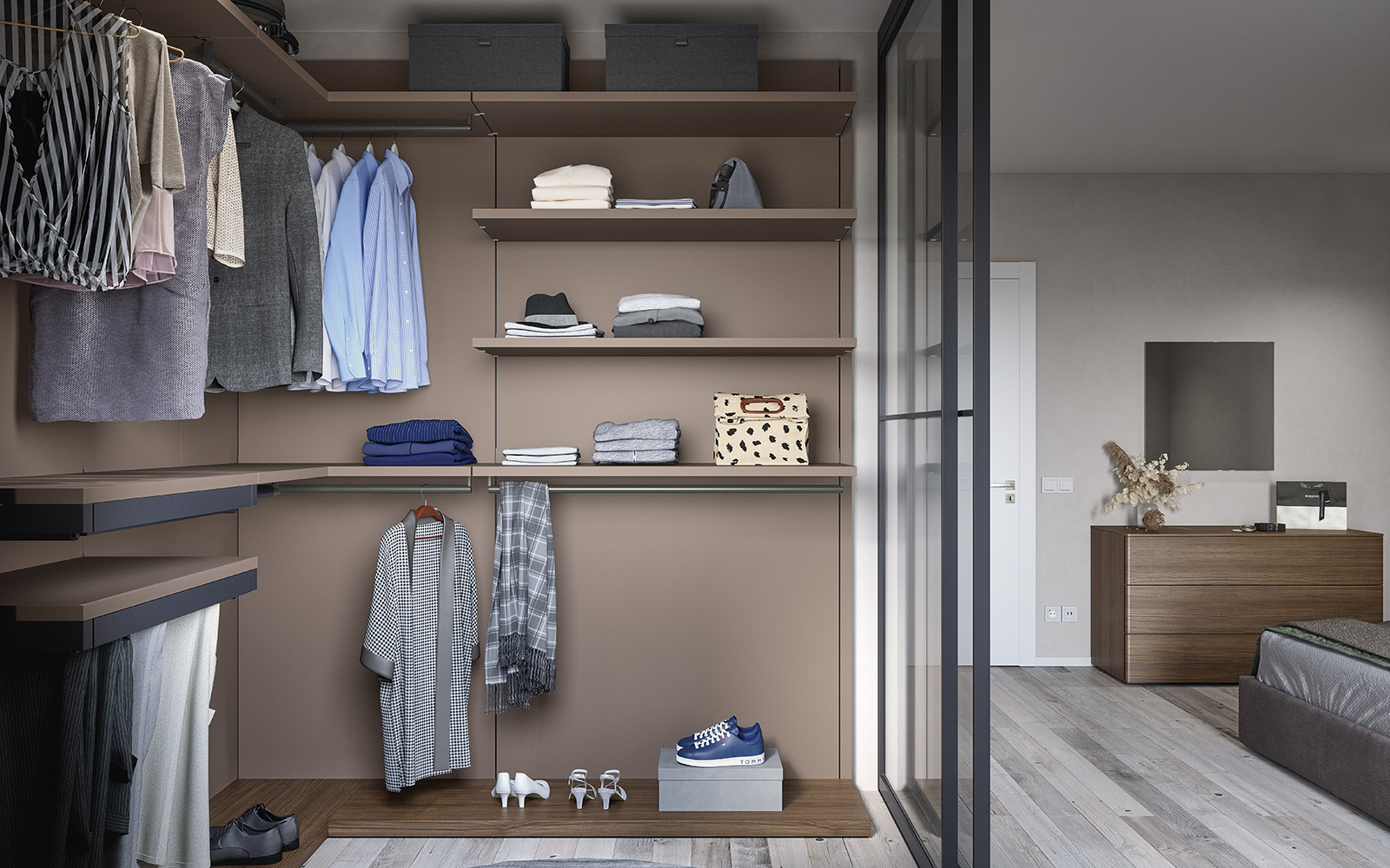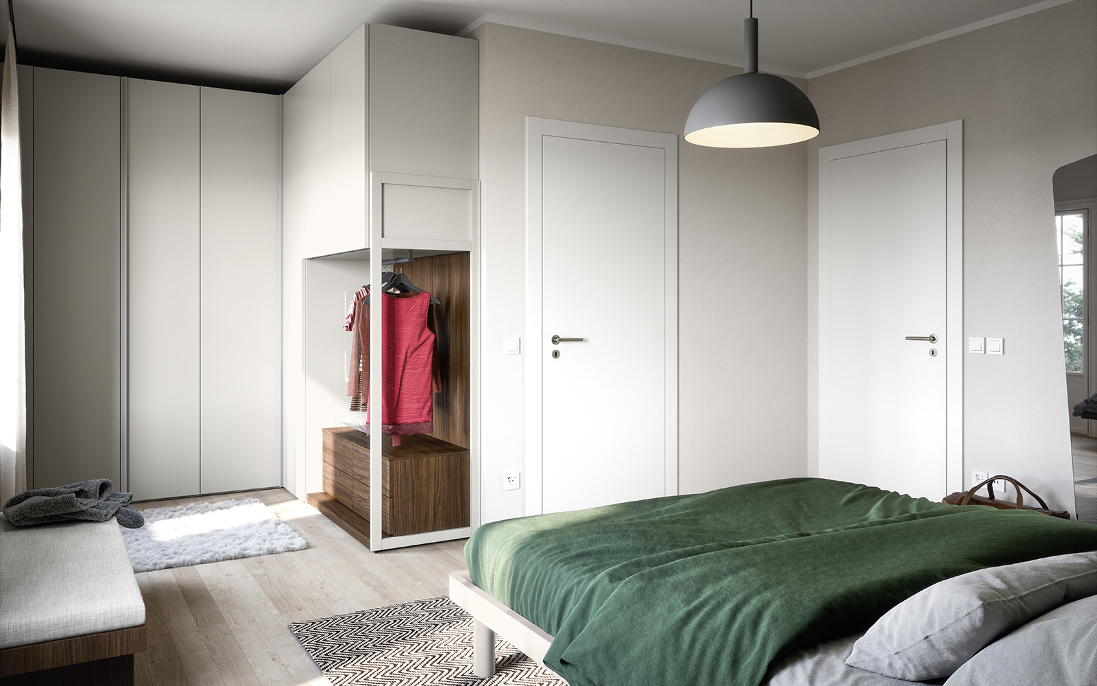 La presencia de un nicho en el dormitorio es una oportunidad para organizar la habitación de forma funcional, optimizando el espacio. Gracias a la versatilidad de los elementos, las diferentes composiciones transforman la habitación, dándole carácter y racionalidad.