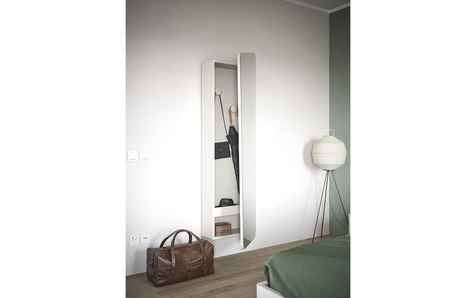 La boiserie decora y completa la composición: se puede equipar con repisas, colgantes y bases de suelo o suspendidas. Una solución ideal para caracterizar el espacio, gracias también a los distintos colores y acabados disponibles.