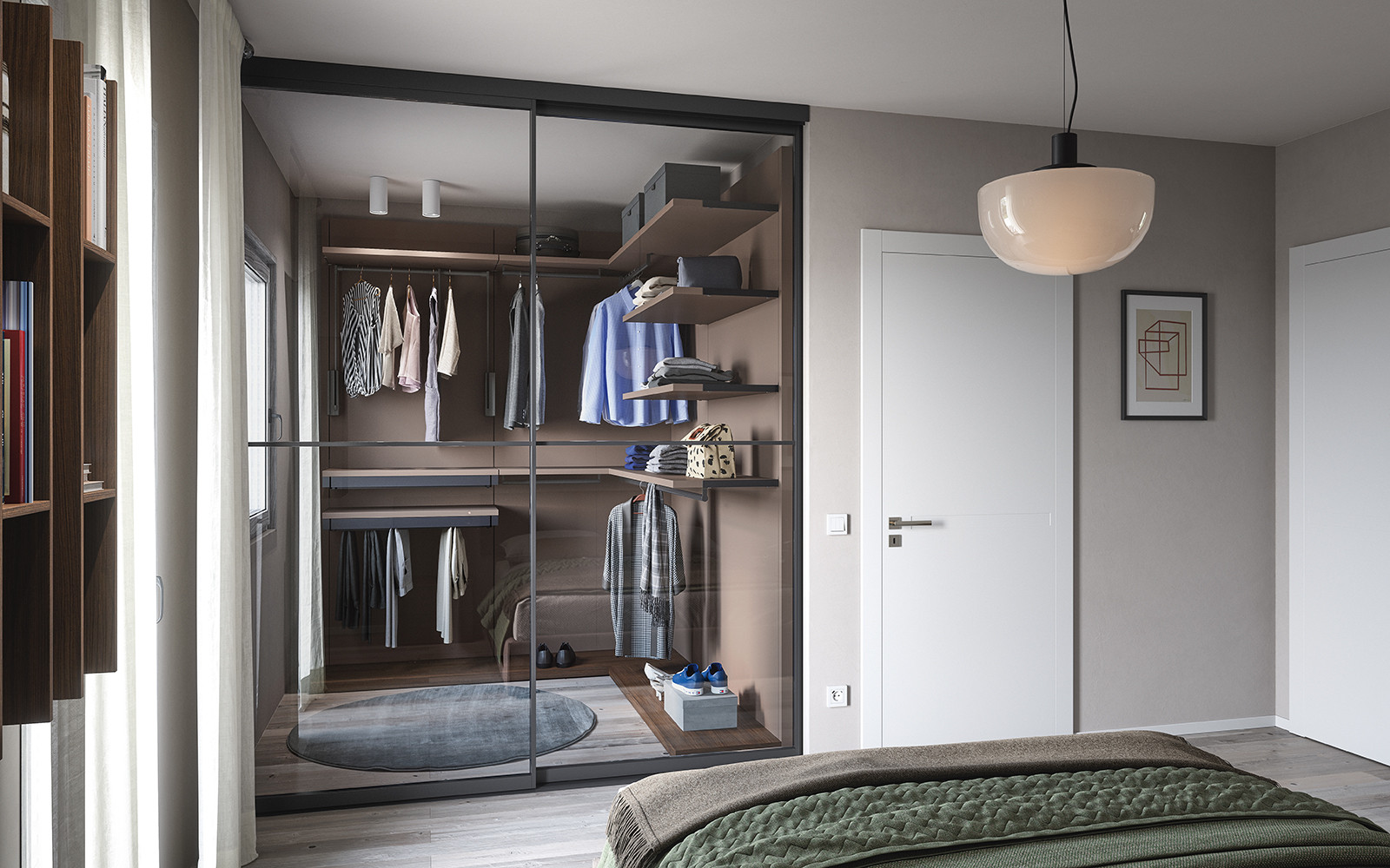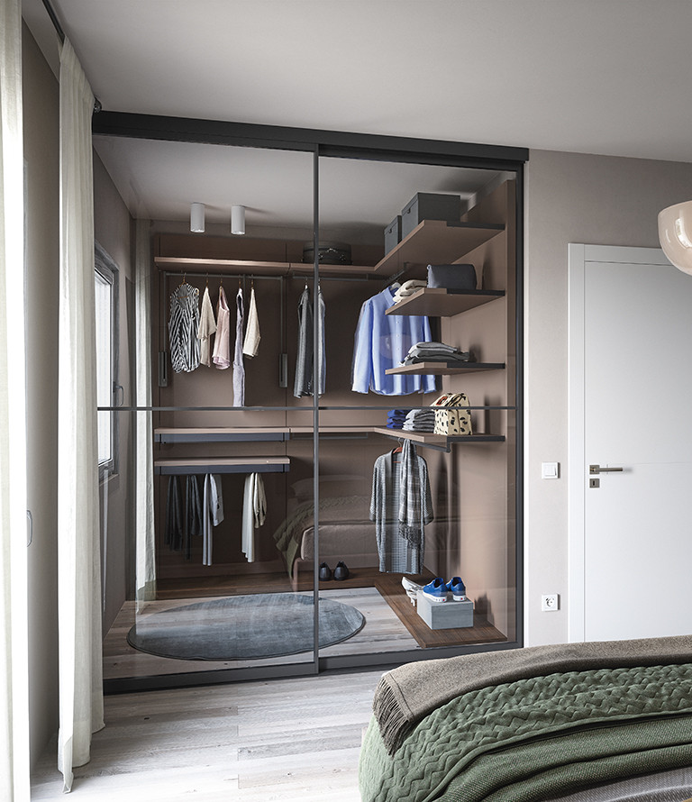 Las cabinas se distinguen por la modularidad de sus elementos. Se adaptan a todo tipo de habitaciones, también en los áticos. Es posible elegir entre cierres batientes, plegables o correderos para adaptarse a las características del proyecto.