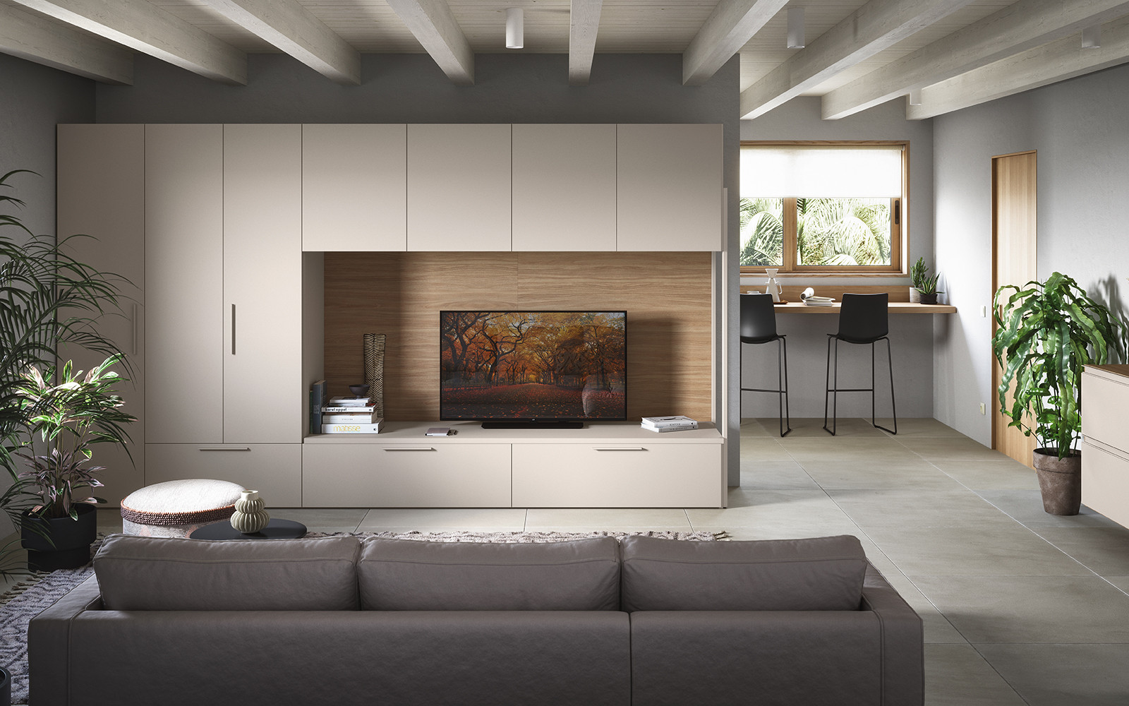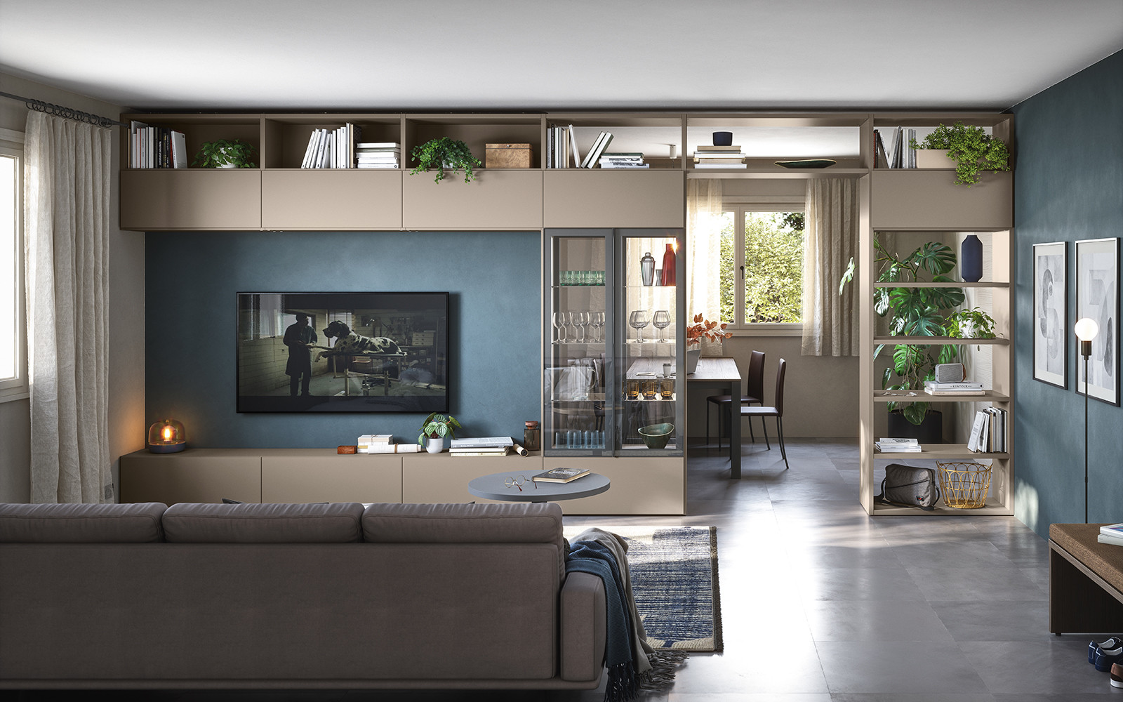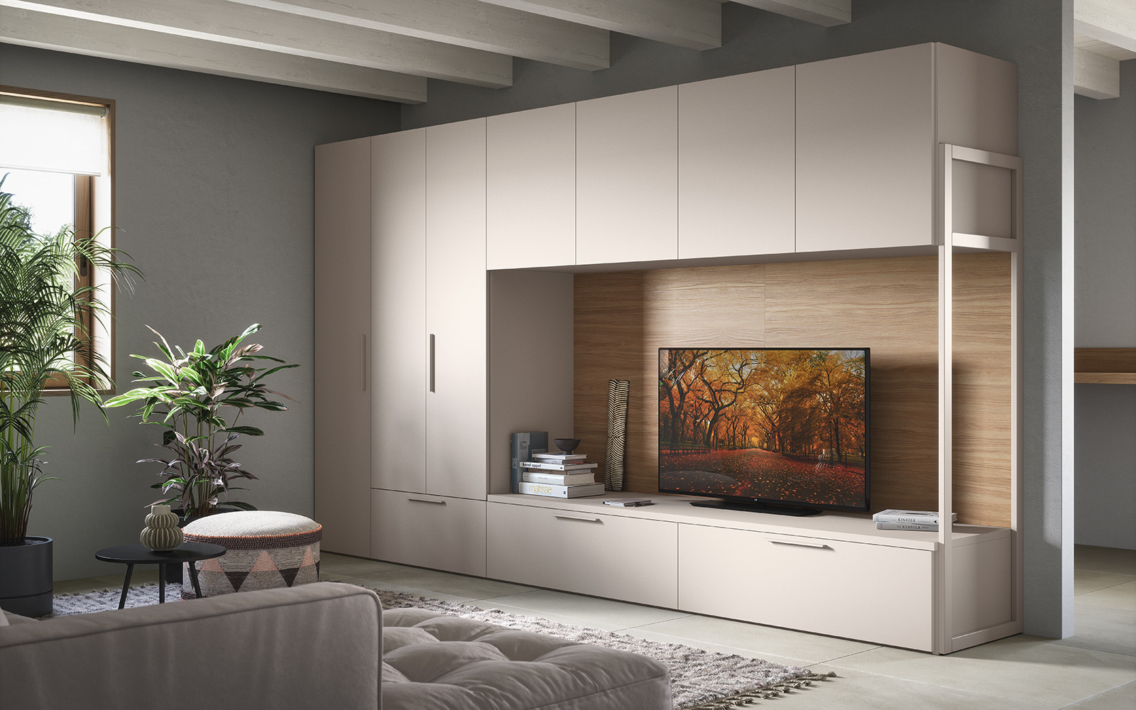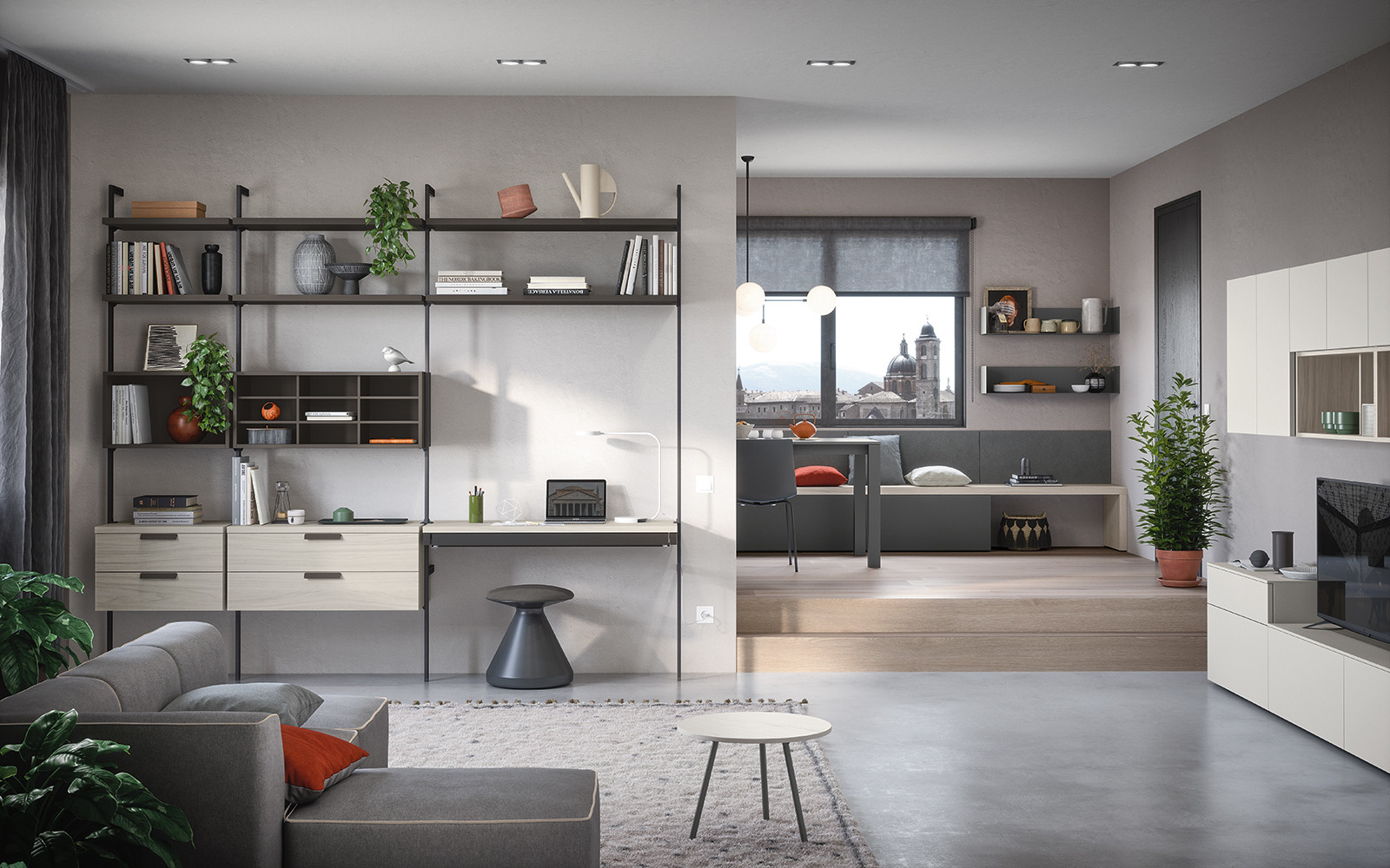 Diseñar un rincón de relajación pensado para aprovechar al máximo la presencia de una pared divisoria. Una composición que se integra perfectamente en el entorno y responde, con estilo, a las necesidades funcionales de la vida cotidiana. Para crear una zona de estar con gusto personal.