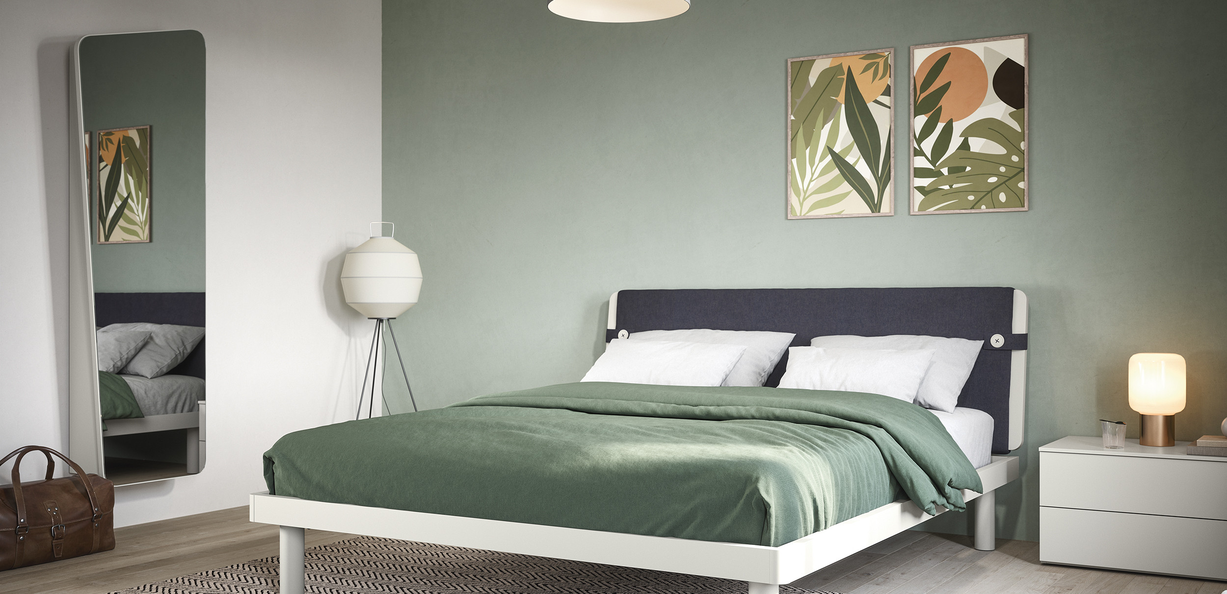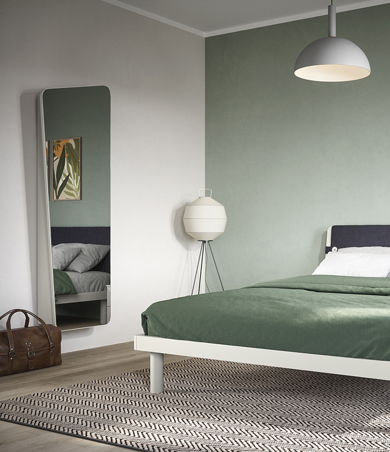 La boiserie decora y completa la composición: se puede equipar con repisas, colgantes y bases de suelo o suspendidas. Una solución ideal para caracterizar el espacio, gracias también a los distintos colores y acabados disponibles.