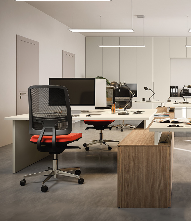 Sofia es una silla de oficina diseñada para garantizar un uso agradable. El respaldo con soporte lumbar es de malla transpirable, un material de alta calidad diseñado para resistir el desgaste.