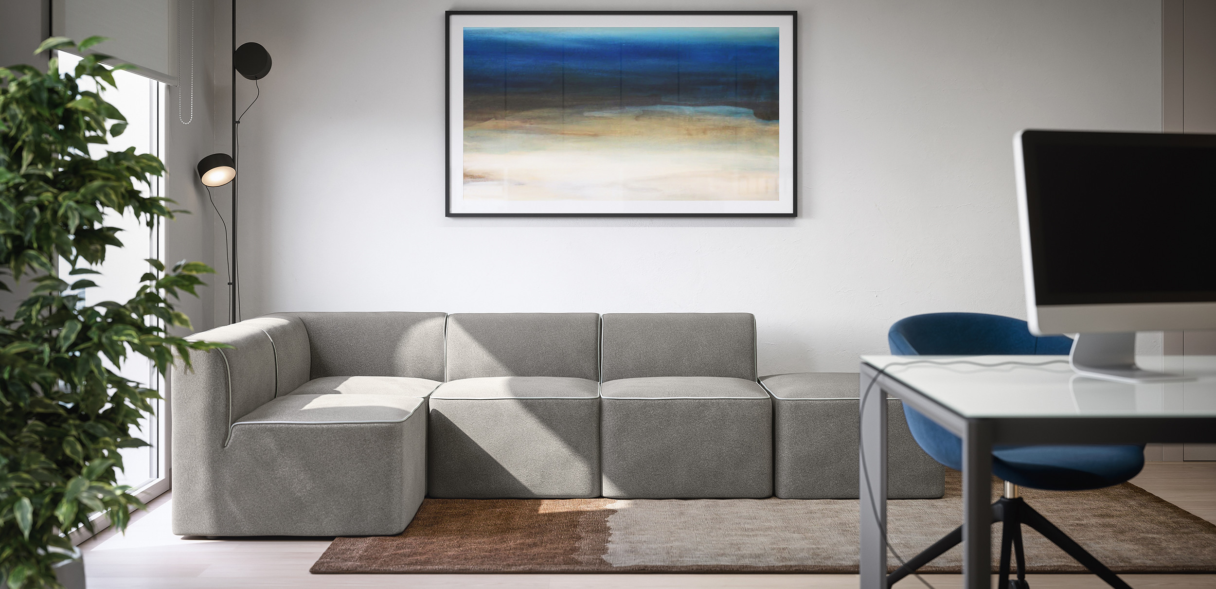 Disponible en una variedad de telas o en una versión de piel sintética, para que tu sofá sea único. El carácter vivo de las variantes de la tela con bordes en contraste se convierte en un detalle inesperado. El revestimiento desenfundable facilita su limpieza.
