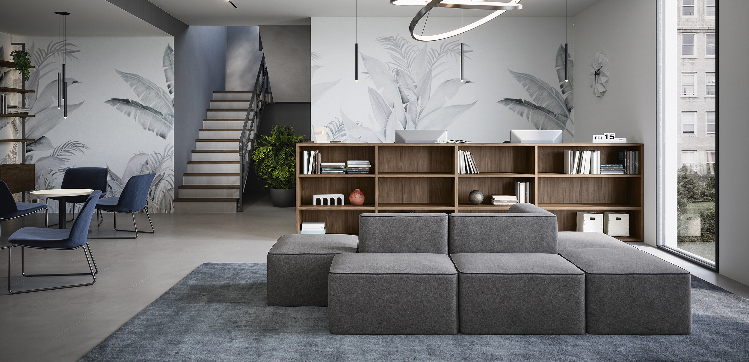 La línea cómoda y esencial del asiento del sofá Madrid garantiza una amplia libertad de composición. Se caracteriza por la versatilidad de los elementos, que pueden combinarse según la forma y el tamaño de la habitación. Una forma única de crear tu propia isla de relax.