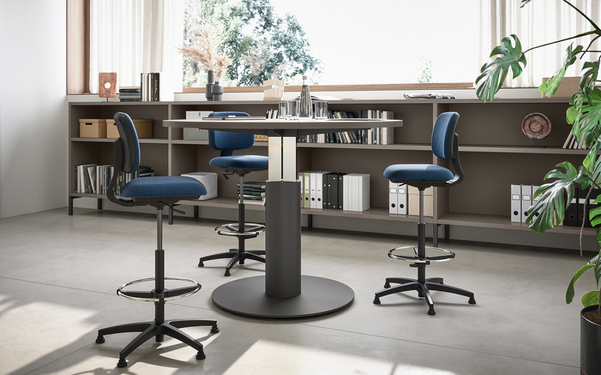 ¿Buscas una solución práctica y ágil? Es posible elegir escritorios con patas dinámicas y elevación asistida que permiten subir y bajar fácilmente la superficie de trabajo, adaptándose a tus necesidades.