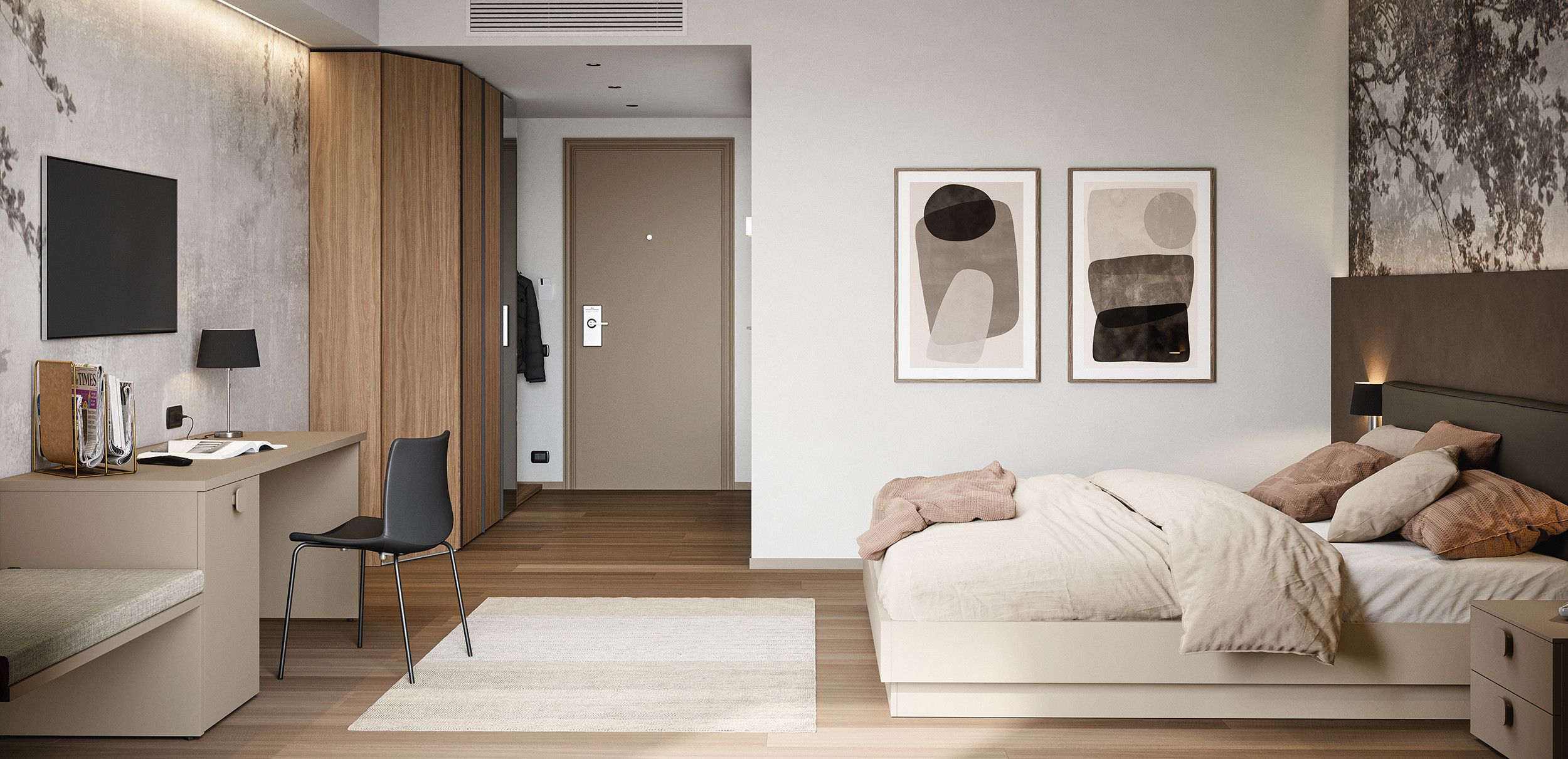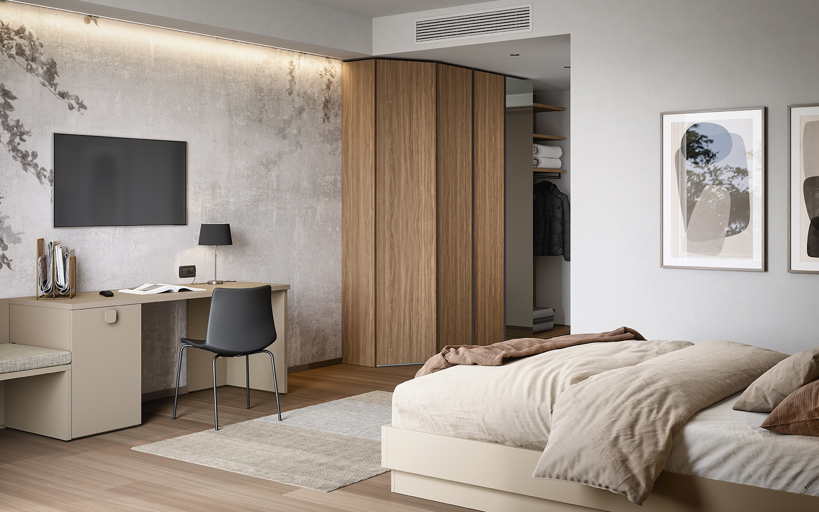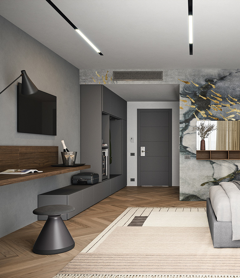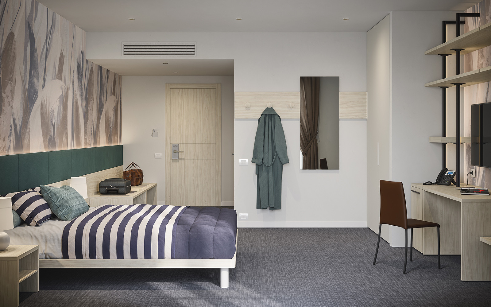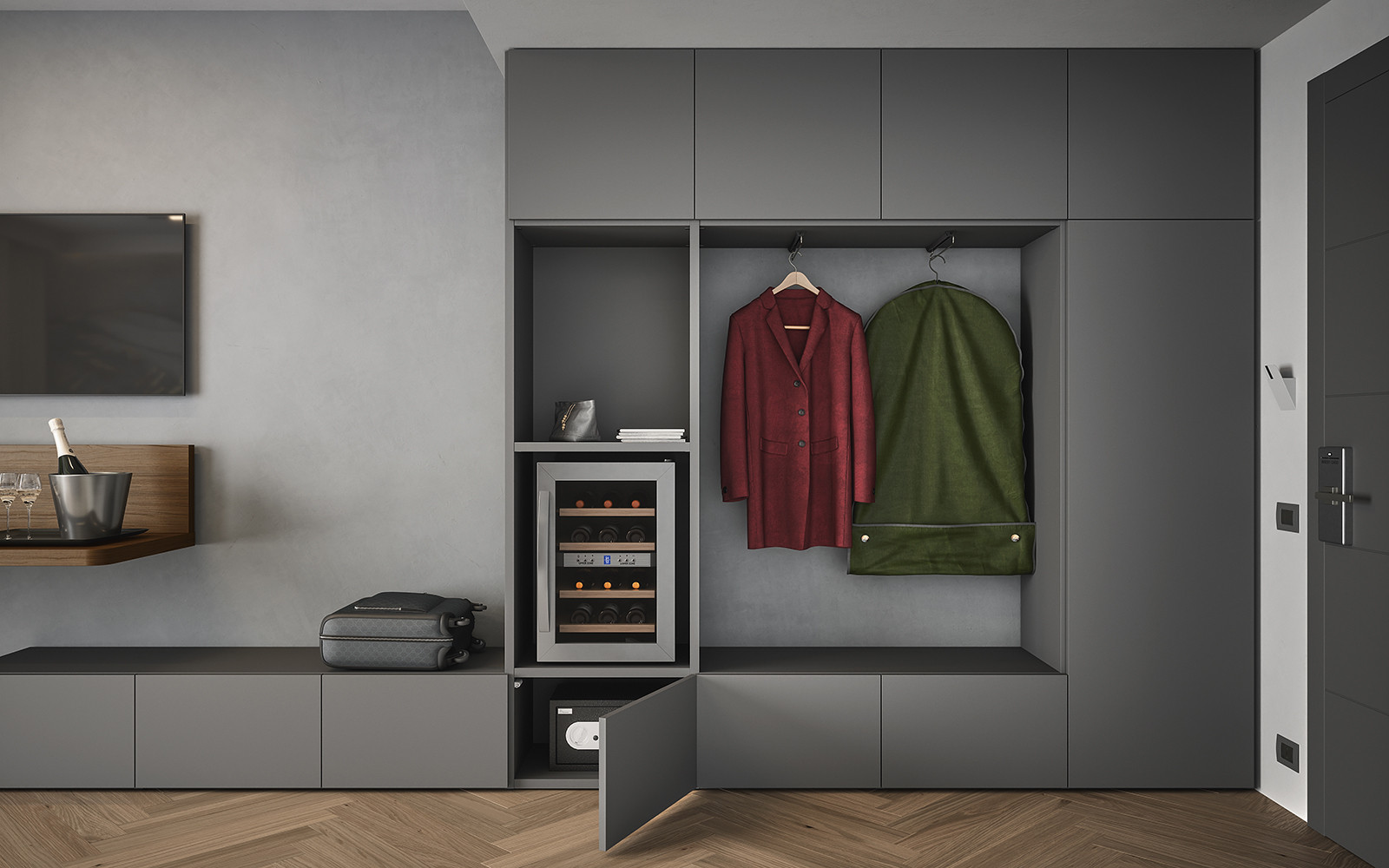 Pour ceux qui voyagent, il est important que la chambre d’hôtel ait toutes les caractéristiques nécessaires afin qu’elle soit confortable. Des éléments de rangement fonctionnels, permettant de garder tout en ordre et de ranger les valises ou d’autres objets, exaltent la sensation de bien-être.