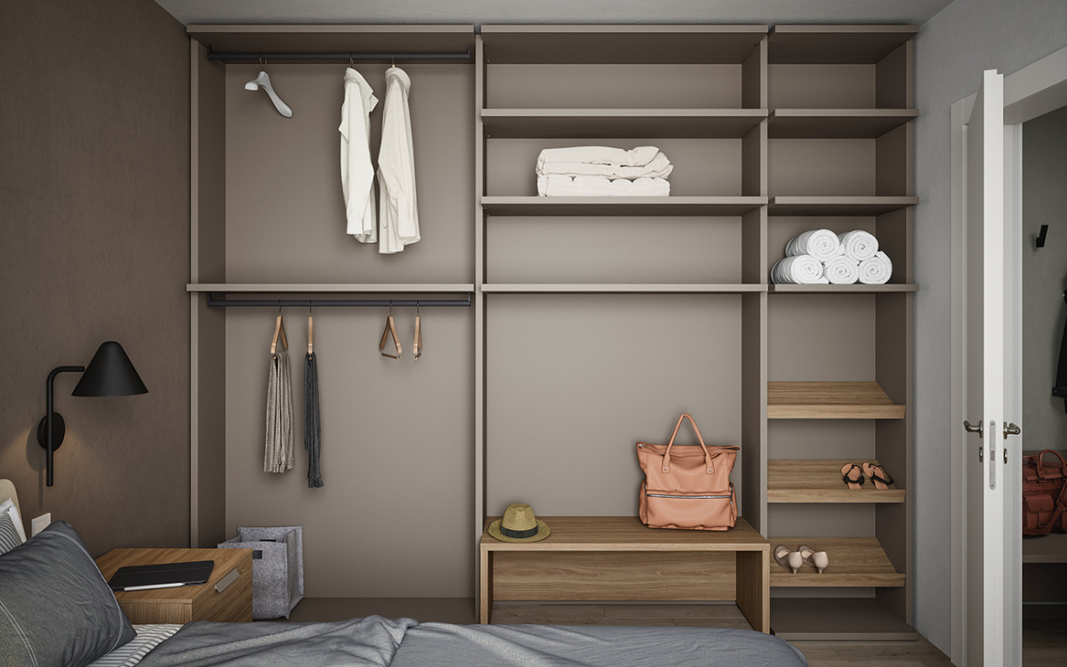 Les modules existent avec ou sans panneau mural, alors que les accessoires intérieurs peuvent être choisis en fonction des besoins personnels et s’adapter ainsi à chaque projet.