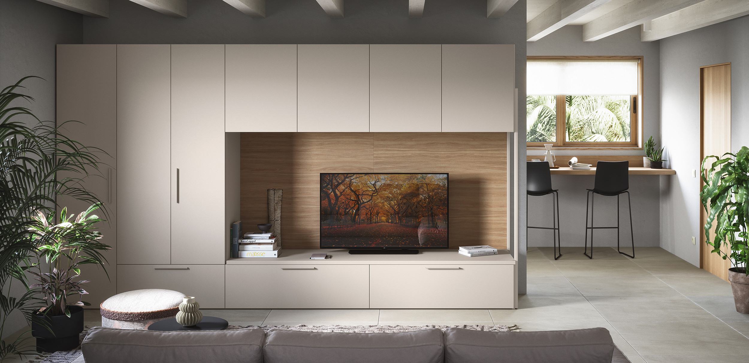 Arredare la zona relax e ricavare lo spazio per il televisore? Il sistema a ponte è perfetto per sfruttare al massimo la stanza realizzando composizioni ottimizzate.